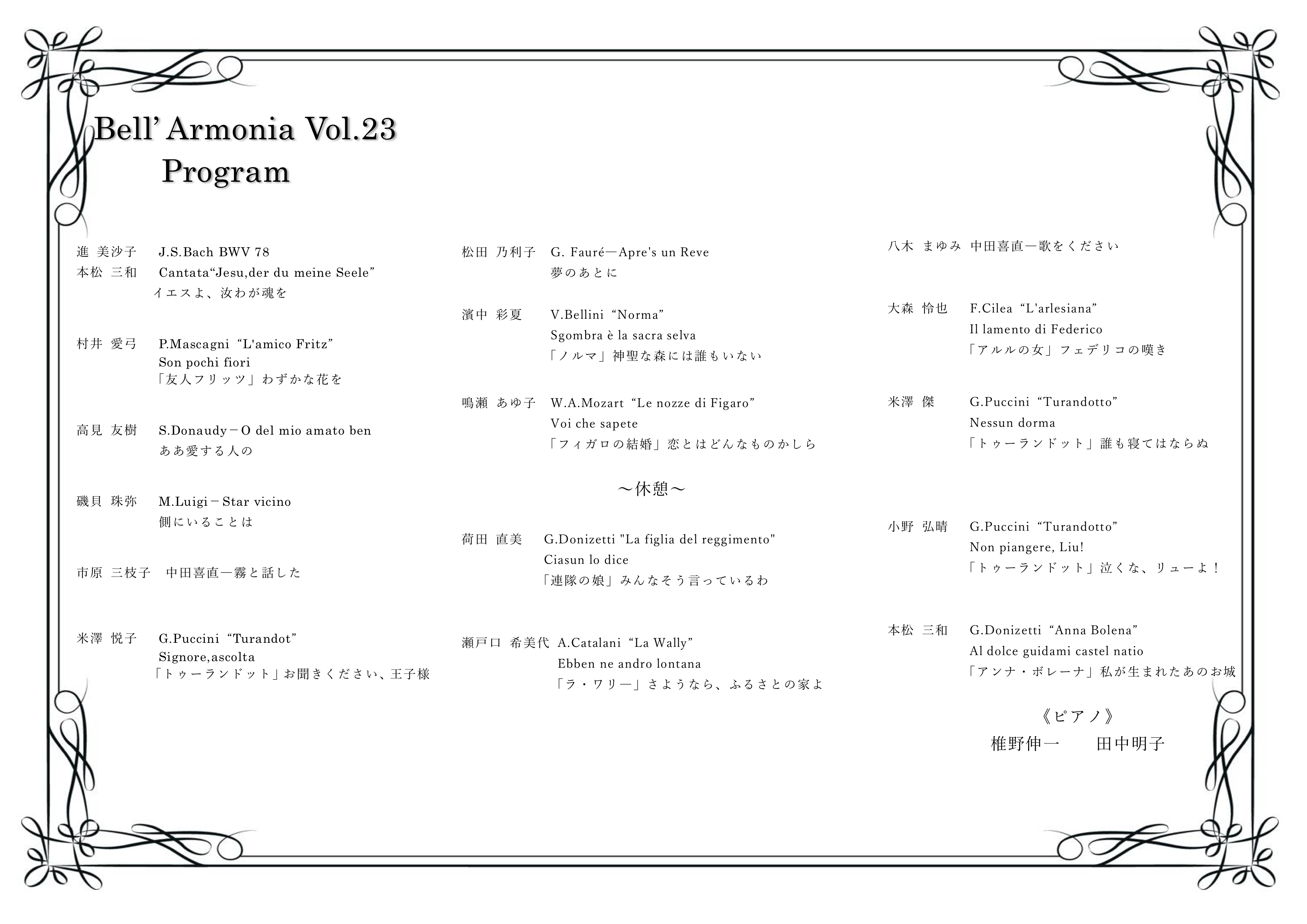 - 2024年7月10日(水)松本美和子門下生による Bell’ Armonia Vol.23 ~アリアとアンサンブルの調べ~