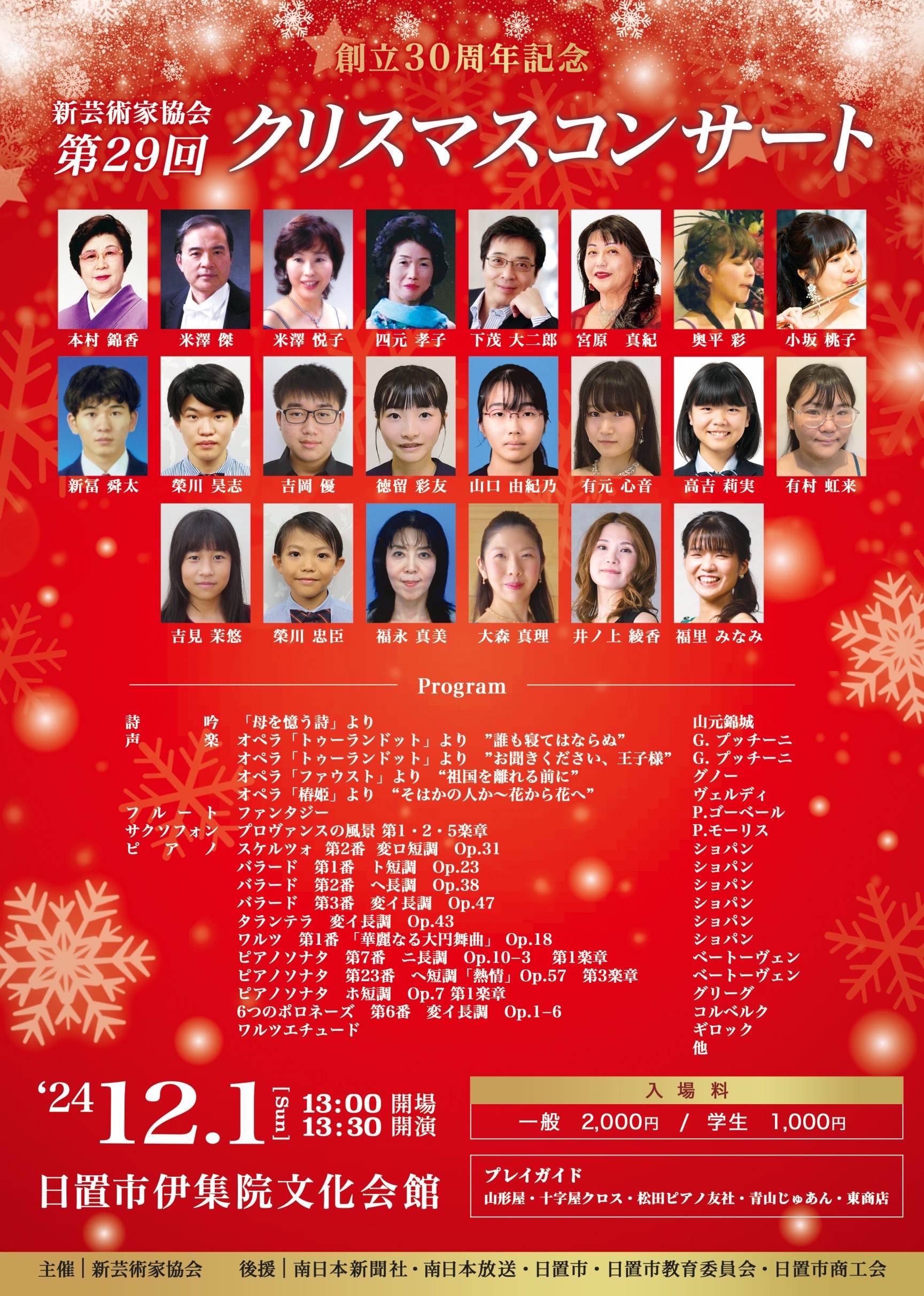- 2024年12月1日(日)新芸術家協会 第29回クリスマスコンサート(創立30周年記念)in 鹿児島